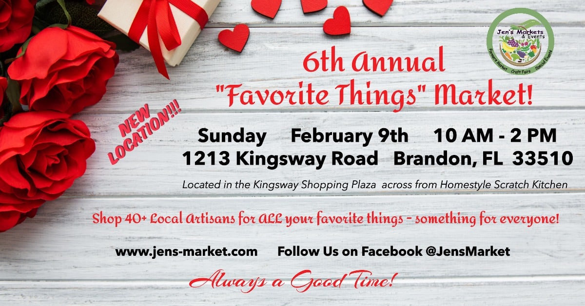 A new location for our 6th Annual Favorite Things Market! Come shop over 40 local vendors and find great gifts for friends and items for yourself! Food, Crafts, Decor. In the Kingsway Shopping Mall parking lot